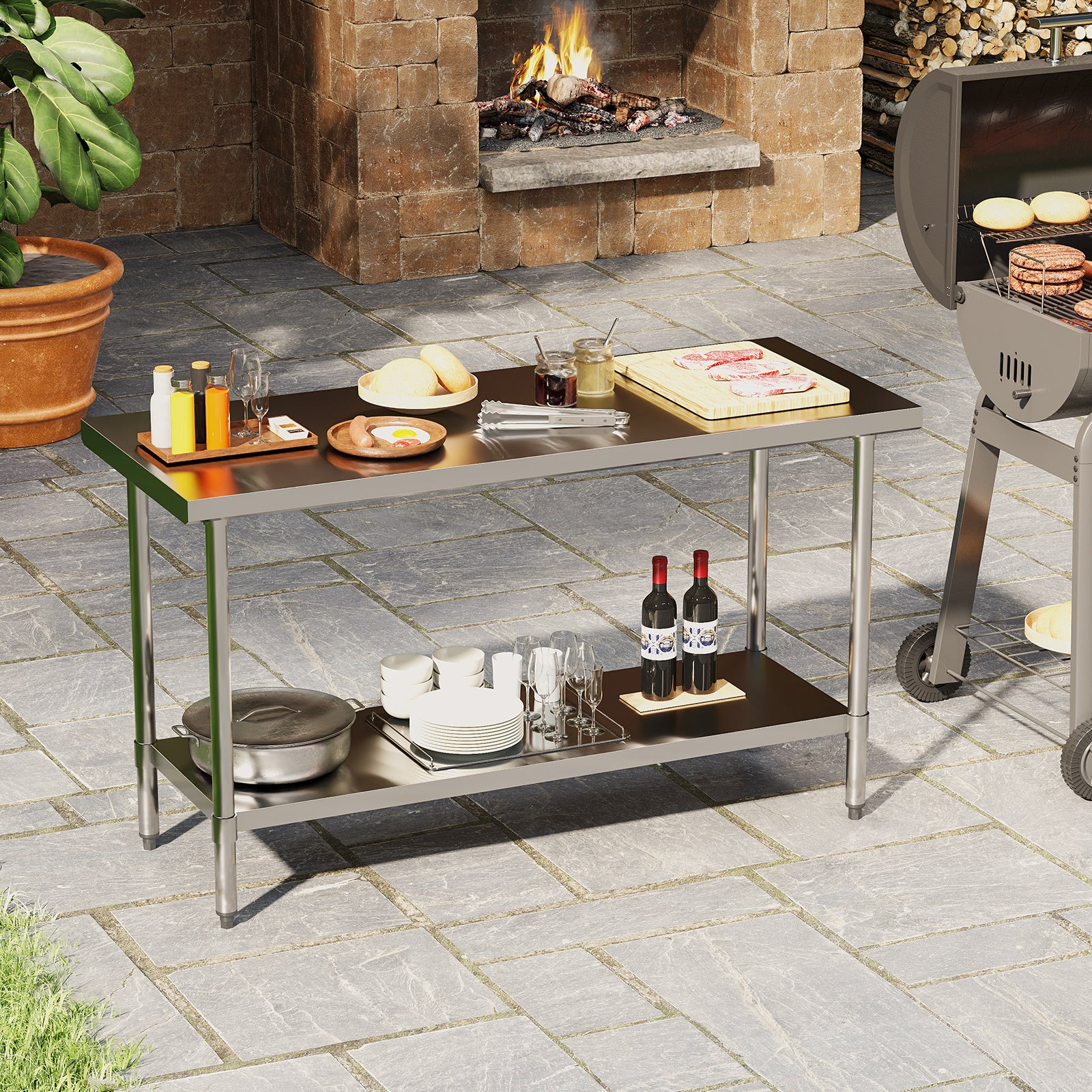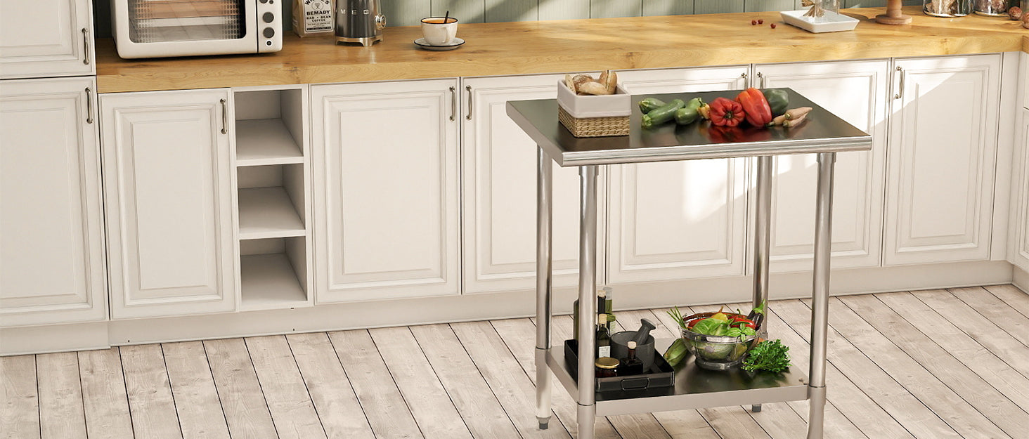 Stainless Steel Work Table with Adjustable Undershelf, 24"L x 30"W Tabletop, Heavy Duty Multipurpose Food Prep Workstation for Commercial Kitchen, Restaurant, Home, BBQ, and Garage, Silver